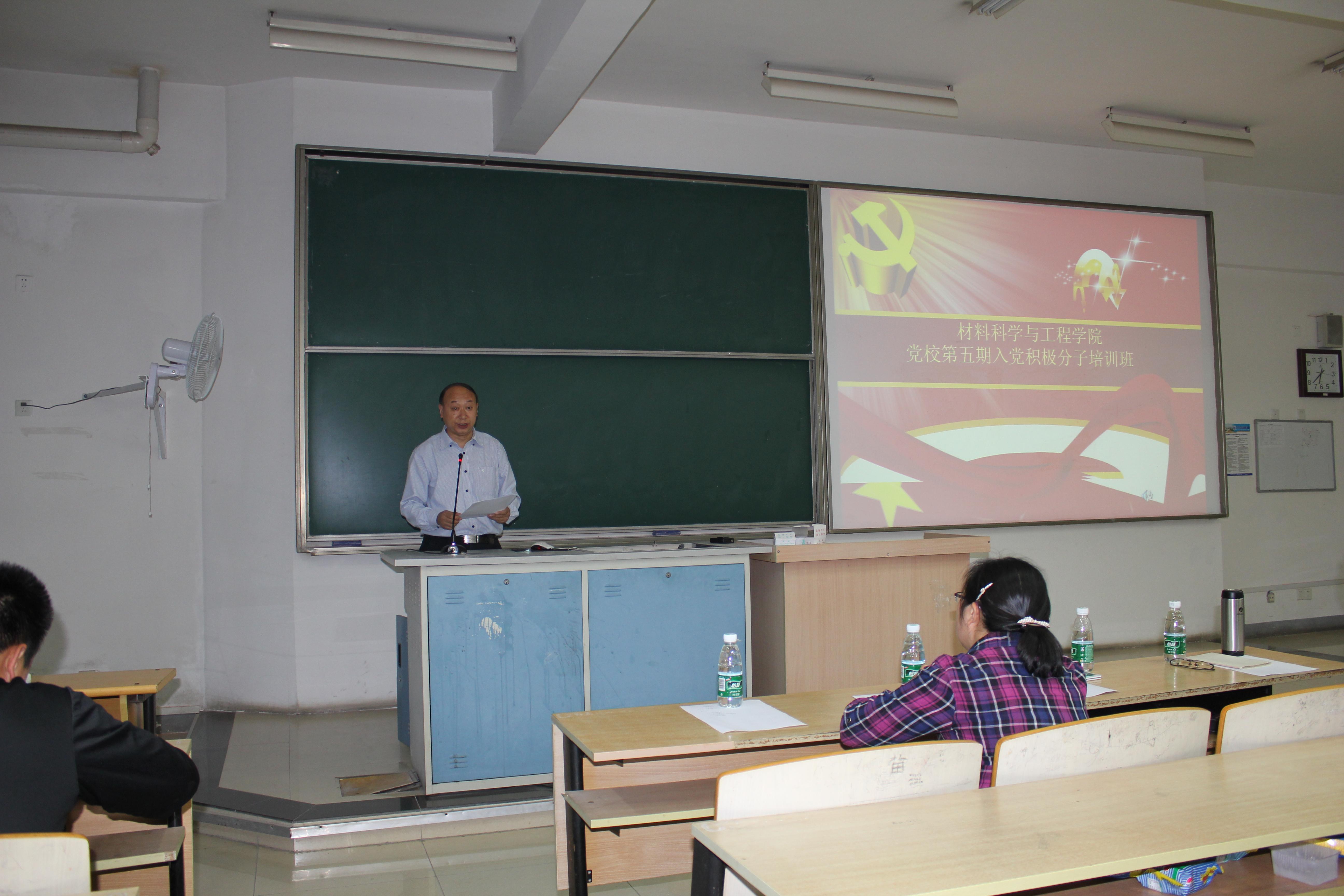 首先院党委书记李兴鳌教授致辞。李书记向在场学生表示祝贺,欢迎他们加入本期的党校班。李书记就三个方面向在场的所有学生分享了成为共产党人的基本素质:一是要确立“终身学习”的学习观;二是要与时俱进,开拓创新;三是要牢记宗旨,服务群众。最后,李书记围绕习近平总书记的“五四讲话”精神勉励在场的学生,要积极培育和践行社会主义核心价值观,社会主义核心价值观关乎国家和民族未来,是中国特色社会主义最鲜明的特色之一,是实现中华民族伟大复兴中国梦的价值基础,也是推动中国现代化进程的持久动力。作为当代大学生,要时刻牢记时代赋予的使命,要为实现中华民族伟大复兴的中国梦而努力拼搏。