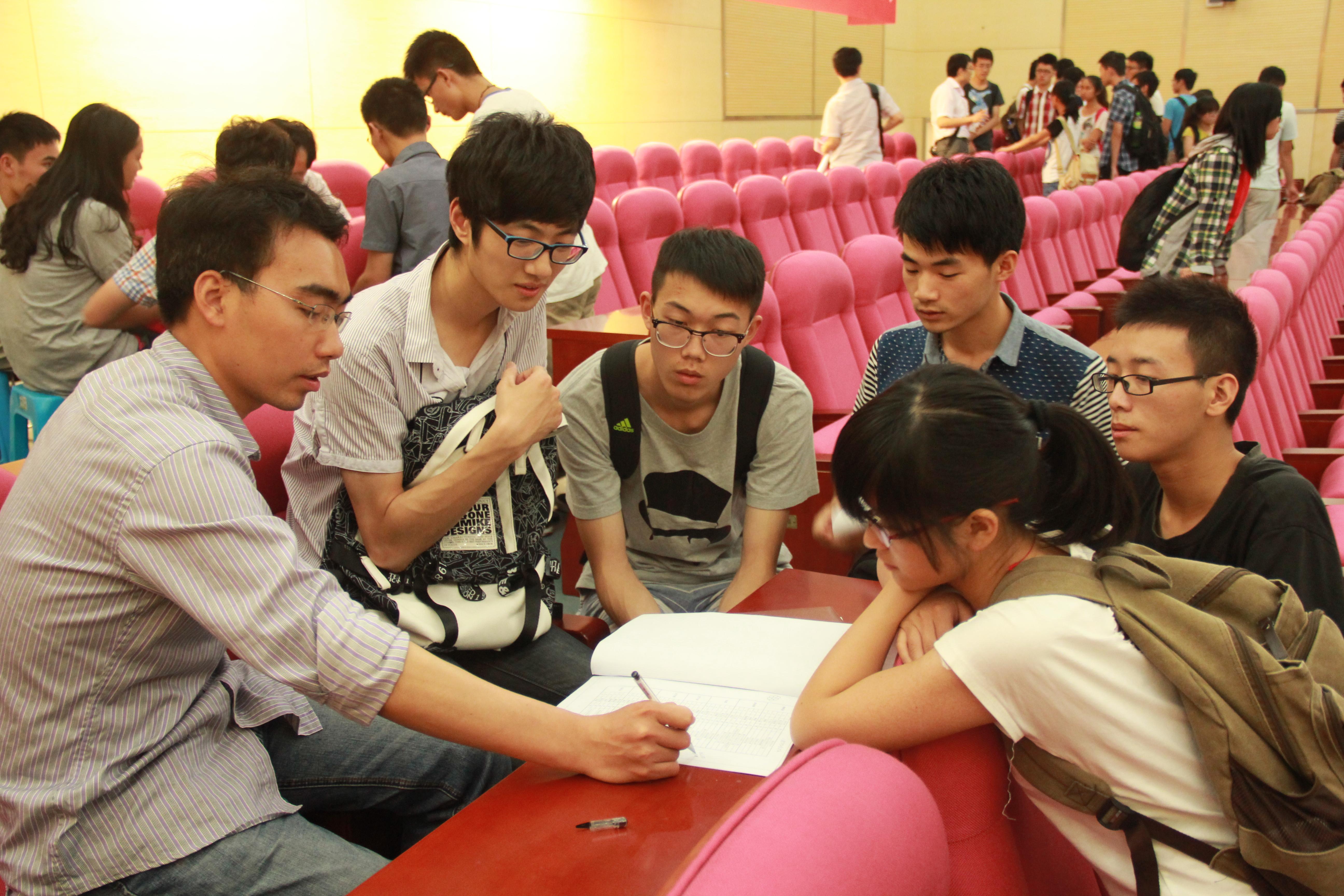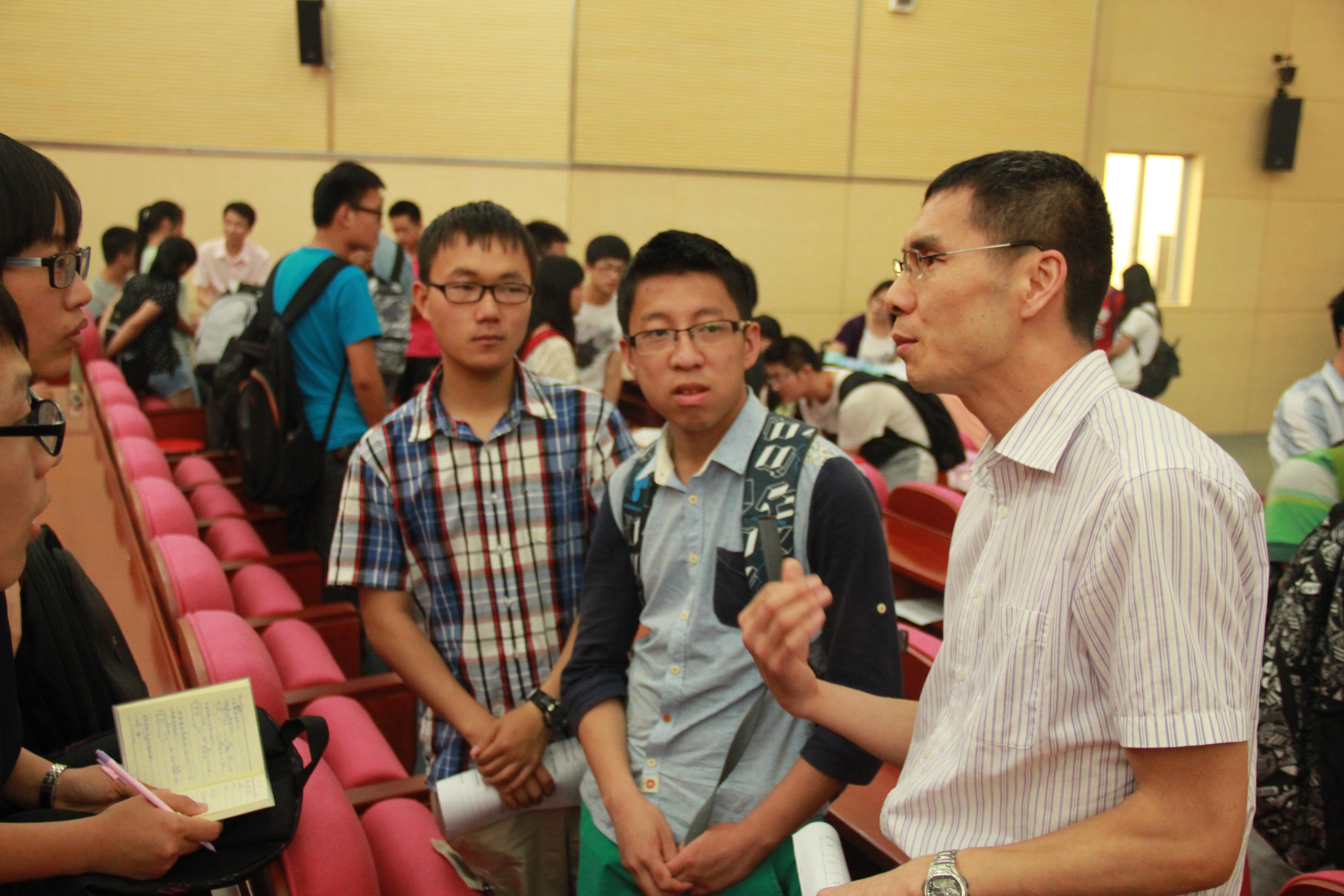 见面大会之后,各位导师带领自己指导的学生开展了自由而生动的讨论。黄维院士仔细详尽的向自己指导的同学们介绍了目前承担的项目与工作,并热情回答了每位同学的提问。导师们和同学们就学习、生活、考研、就业等方面进行深入的探讨和交流,导师们指点迷津,同学们受益匪浅。会后,导师和同学们互留联系方式,告之自己团队组会时间以便进一步交流。