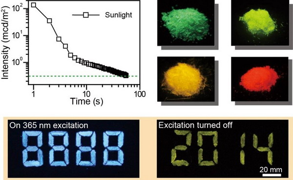 该研究负责人、中国科学院院士、有机电子与信息显示国家重点实验室培育基地主任、信息材料与纳米技术研究院院长黄维教授介绍说,早在炎帝时期,人类就发现了长寿命发光的余辉现象,也就是传统上所说的“夜明珠”,虽然经过千百年的发展,余辉发光现象依旧局限在无机发光材料。团队骨干陈润锋副教授带领的研究小组长期致力于有机余辉材料的研究,在有机分子激发态调控研究方面经验丰富,所指导的安众福博士、郑超博士、陶冶博士、史慧芳博士等经过长期实验观测,经4年多时间的摸索和思考,逐渐认识到在磷光发光中引入H-聚集结构对实现有机长余辉发光具有重要作用,并对其控制机制、实现条件、材料分子设计和发光机理等进行了系统深入的研究,由此成功实现了无金属和其它重元素修饰的纯有机材料激发态寿命调控,有机长寿命发光颜色从绿色到红色大范围可调,并且发光持续时间长达56秒,获得了世界上首例室温有机长余辉材料。这一成果是该团队在有机光电子学领域多年探索与积累的体现,该研究为有机光电功能材料的激发态调控提供了一条具有革命性意义的思路和途径,有着广阔的应用前景。