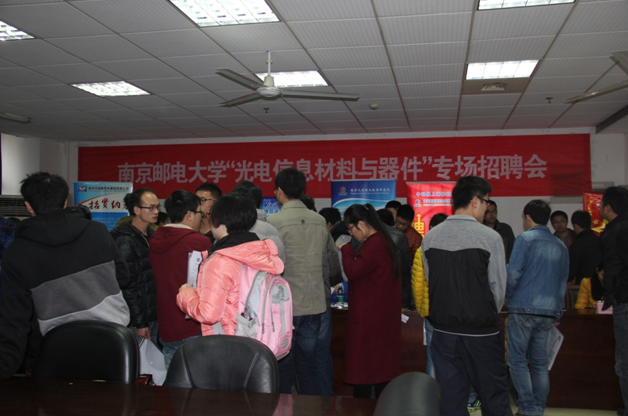 12月9号上午,91吃瓜 “光电信息材料与器件”专场招聘会在教5-413举行。招聘会共有14余家光电、材料领域的企业前来选聘贤才,提供了100多个研发、销售和管理岗位。参加此次招聘会的有上海华显、昆山国显、红宝丽集团、先进激光、康众光电、第壹有机光电、先丰纳米、华信藤仓、安普瑞斯、南京长江涂料、中盛光电等多家高科技企业。招生就业处饶林果副处长、学院党委书记李兴鳌、副院长马延文参加了招聘会,招聘会由党委副书记于景宝主持。