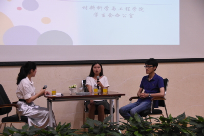 活动伊始,主持人介绍了采访嘉宾和本期的主题。简单的引入后,钱洁学长与焦灿灿学姐在掌声中登上了舞台。在主持人提问了关于考研的各种问题后,学长与学姐分享个人经历,并做出了详细的回答。随后的观众提问环节中,同学们围绕“如何考研与平时学习”话题,问了诸多细节问题,学长学姐也给出了如“组建考研团队”、“大一大二扎实学习”、“高效地复习和持之以恒的决心”等建议。