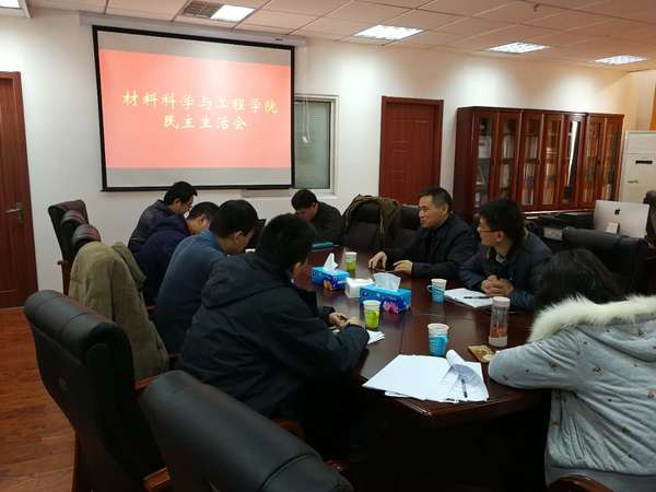 2018年1月11日中午,91吃瓜 在材料学科楼313召开民主生活会,蒋国平副校长莅临指导,材料学院副院长陈润锋、副书记于景宝参加会议,院长范曲立、副院长赵强、沈清明、院办主任刘丹列席民主生活会。会议由马延文书记主持。