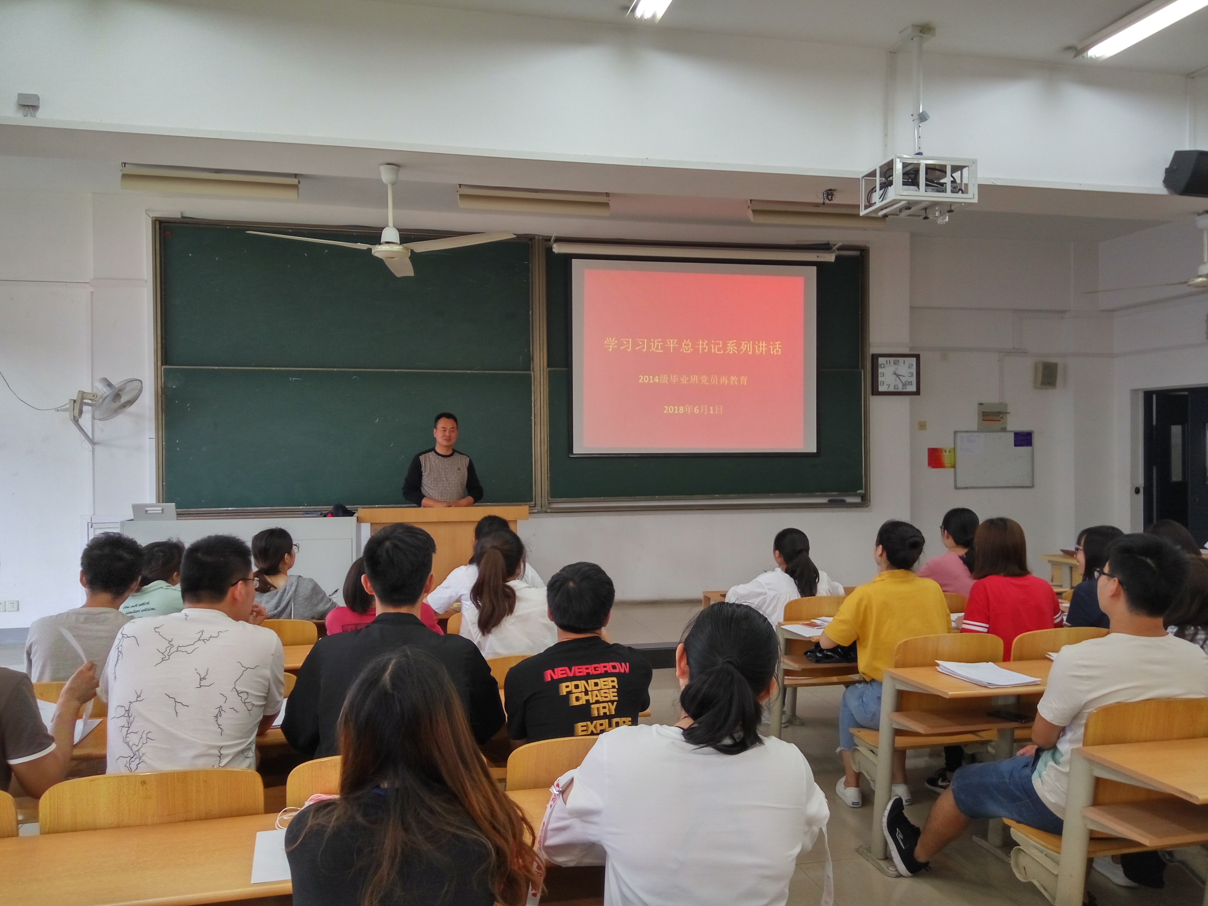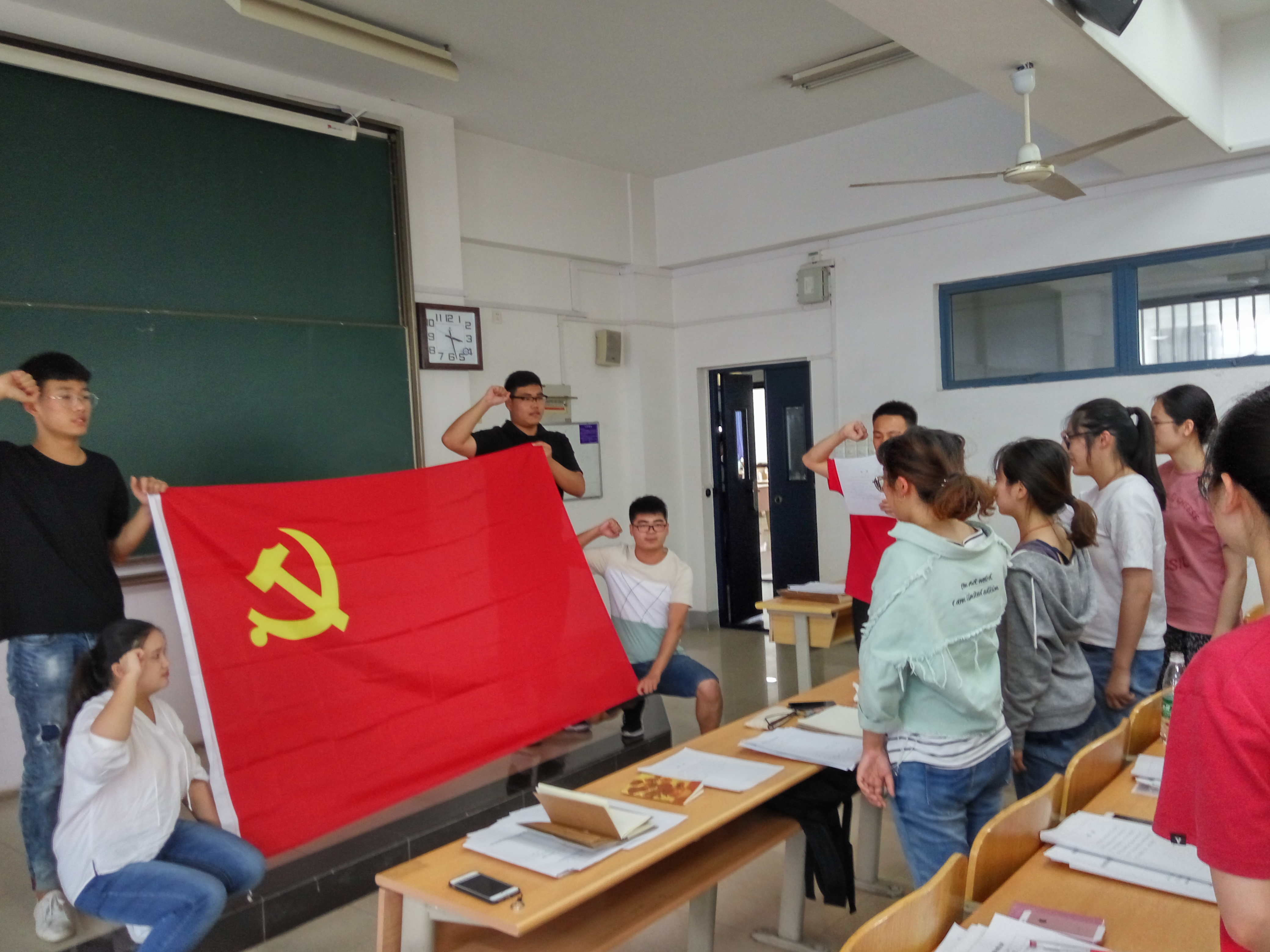 2018年6月1日,91吃瓜 学工党支部在教4-309教室,组织即将毕业的毕业生开展重温入党誓词,学习习近平总书记系列重要讲话内容的毕业班党支部活动。