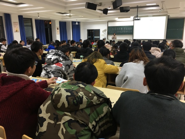 朱教授以在校大学生的学习生活为切入点,以现场压力测试互动的方式展开讲座,引起了同学们心理探究的兴趣。随后,朱老师用贴近学生的讲述方式,贴近生活的案例分析,引起了全场学生的共鸣,有理论的高度分析又有实践的运用展开,帮助学生用科学的方法应对来自学习和生活中的各种压力。在正确认识压力方面,朱教授告诉大家,人在不同的生涯阶段都会有不同压力,压力来自多个方面,包括学习、人际关系、情感、人生规划等等。对于压力的管理,朱教授认为压力过小或过大都难有好的表现,中等强度的压力更有利于学习效率的提高,最有利于学习任务的完成。通过相关的案例分析,让大家了解到了如何正确的认识压力,怎样合理的管理压力。对大学的学习生活、开展科学研究、顺利完成学业有积极的指导意义。报告生动精彩,问题分析全面透彻,在场的同学们得到了广泛的认可和共鸣。在最后的提问环节中,同学们积极参与互动,朱教授根据提问学生的具体情况一一解答,会场上讨论气氛热烈。