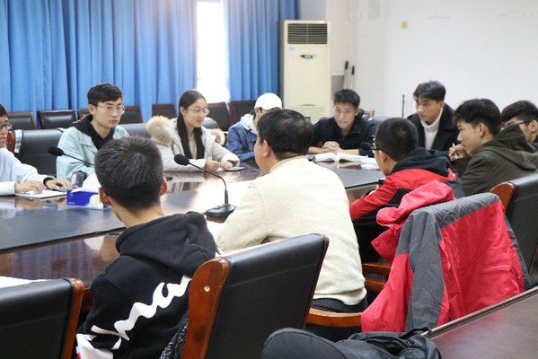 18级新生座谈会在教5-413举行,副书记兼副院长于景宝老师及18级学生代表参加座谈,会议由年级辅导员陈骏主持。