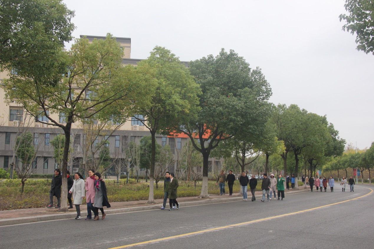 本次健身走活动从仙林校区教五楼开始,沿羊山绿道绕走一圈。教师们三五成群,队伍中不时传来欢歌笑语,欢乐、健康的气氛感染着每一位参与者。老师们在愉快的健身运动中不仅身心得到了充分的放松,加强了交流,还以身作则宣传了健身运动的重要性。