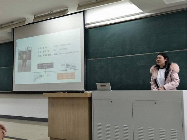 2016级硕士生姚瑶曾担任学院研究生会主席,在宣讲中她结合自己的学生干部经历,讲述了如何兼顾学业和学生工作,传递了始于信念,成于坚持的拼搏精神。她和在场的听众分享了毕业季求职的历程,鼓励大家正视自己,积极求职,走好由校园迈向社会的关键一步。