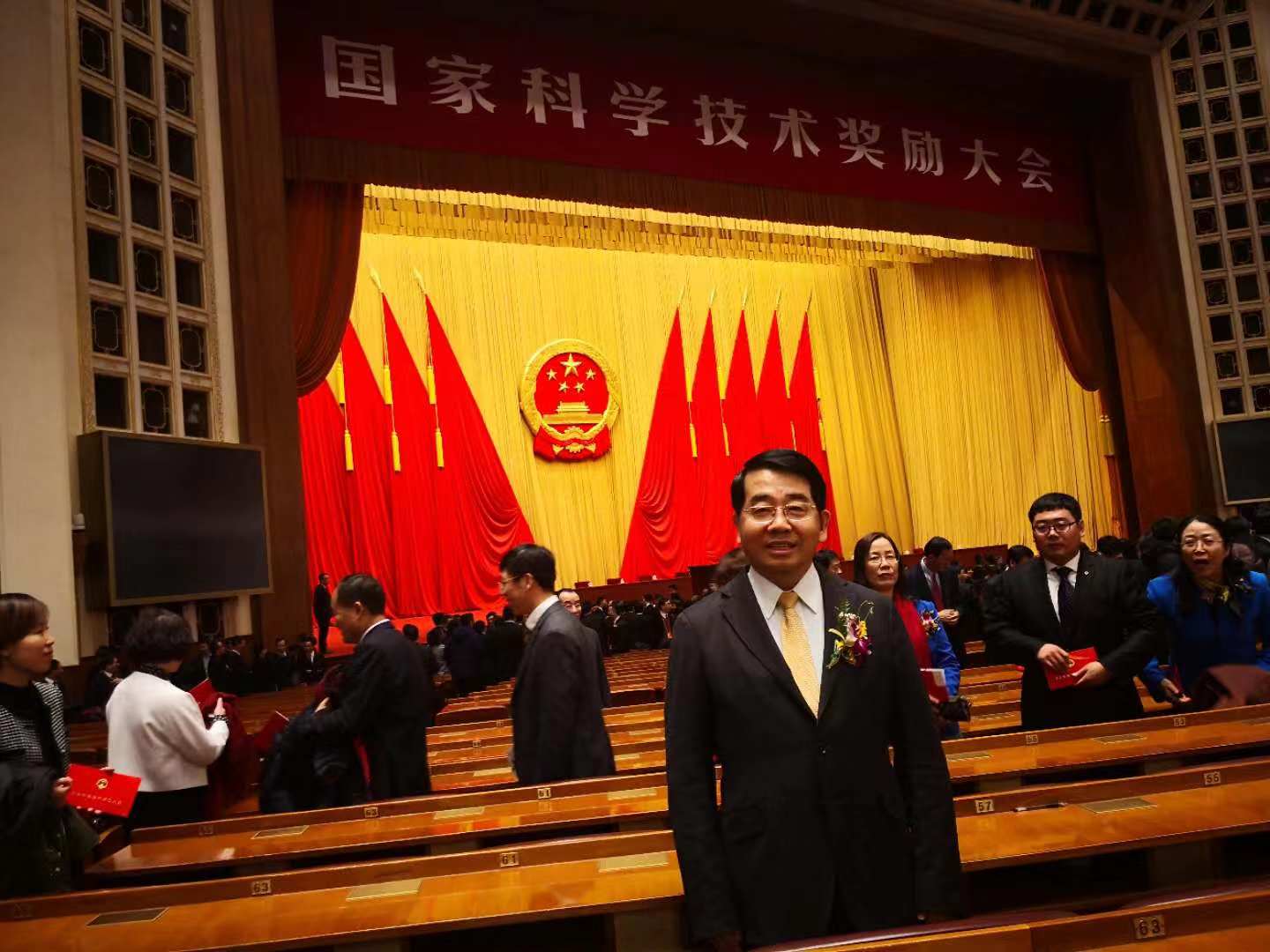 2019年1月8日上午,中共中央、国务院在北京人民大会堂隆重召开2018年度国家科学技术奖励大会。党和国家领导人习近平、李克强、王沪宁、韩正等出席大会并为获奖代表颁奖。