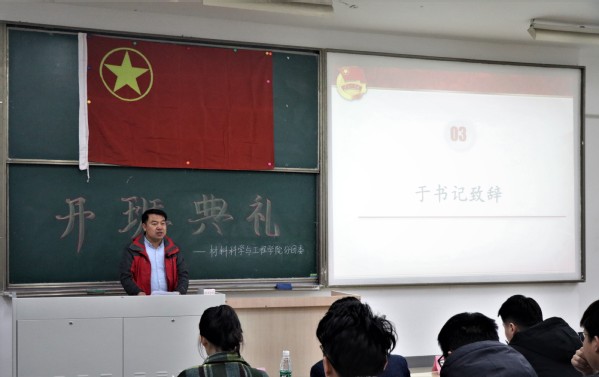 会议伊始,全体起立,奏唱国歌。于书记致辞,他对本期开班表示热烈地祝贺,简要介绍了菁英人才学校的情况,指出本次菁英人才班开班,是学院学习贯彻党的十九大精神,扎实推进“青年马克思主义者培养工程”的一项重要举措。广大学员们要以此次学习为契机,坚定信念跟党走,扎根社会实践,践行社会主义核心价值观。在党的十九大精神的鼓舞下,争做新时代的青年先锋。于书记对学员提出了三点要求:要坚定信仰,志存高远,在推动科学发展、促进社会和谐的伟大实践中实现自己的人生价值;要勤于学习,勇于实践,坚持走理论与实践相结合的道路,注重第二课堂的锻炼,积极参加社会实践,在实践中经风雨、长才干,炼就过硬本领;要学以致用,提升素质,处理好理想和现实的关系,处理好培训班学习与课堂学习的关系,脚踏实地,刻苦学习。