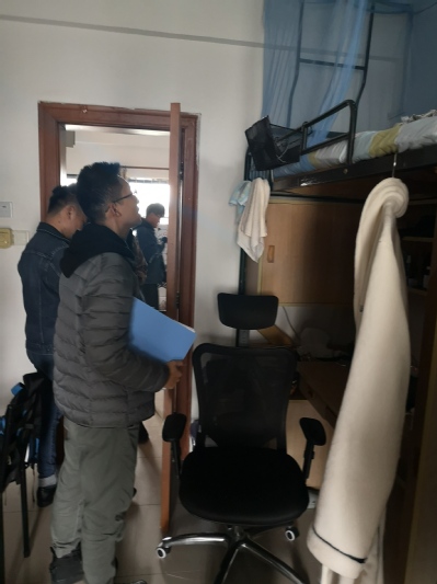 此次检查,重点在用电安全、寝室内接线板安放规范性、宿舍内使用明火现象、疏散通道通畅性、宿舍内杂物堆放情况等。老师们细致检查了每个宿舍,现场对存在的问题提出整改意见。