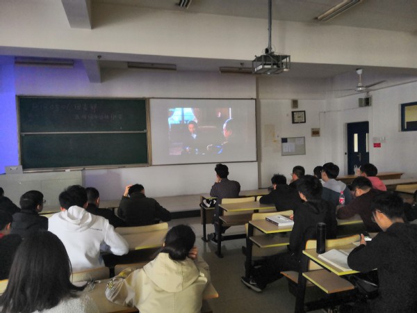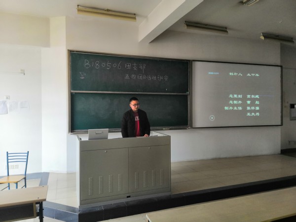 首先由团支书张开翔、学委张浩煜同学带领大家开展五四背景知识有奖竞答活动,为大家普及五四运动相关知识。同学们对五四运动前后及巴黎和会背景故事有一定了解后,进行活动第二项:观看电影《我的1919》,该影片主要反映了巴黎和会中的屈辱外交及顾维钧与肖克俭不同的爱国表现,观影后同学们对弱国无外交进行了深度剖析并提出倡议:大家应努力奋斗,国家的建设与我们每个人都有关!活动最后团支书向大家解读了五四精神在当代的内涵,并鼓励大家为实现中国梦而努力拼搏。活动在激昂的团歌声中落下帷幕。