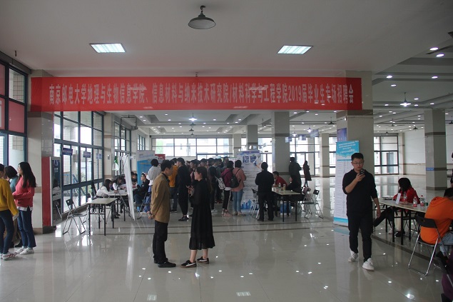 本次招聘会吸引了28家优秀企业参加,包括江苏先丰纳米材料科技有限公司、江苏长江涂料有限公司、南京第壹有机光电有限公司、中天科技集团、安徽秀朗新材料有限公司、南京学而思、苏州晶方半导体科技等单位在内的多家企业提供了近150多个工作岗位,涉及高分子、物理、化学、光学等多个专业领域。近500余名毕业生入场求职,现场氛围热烈。