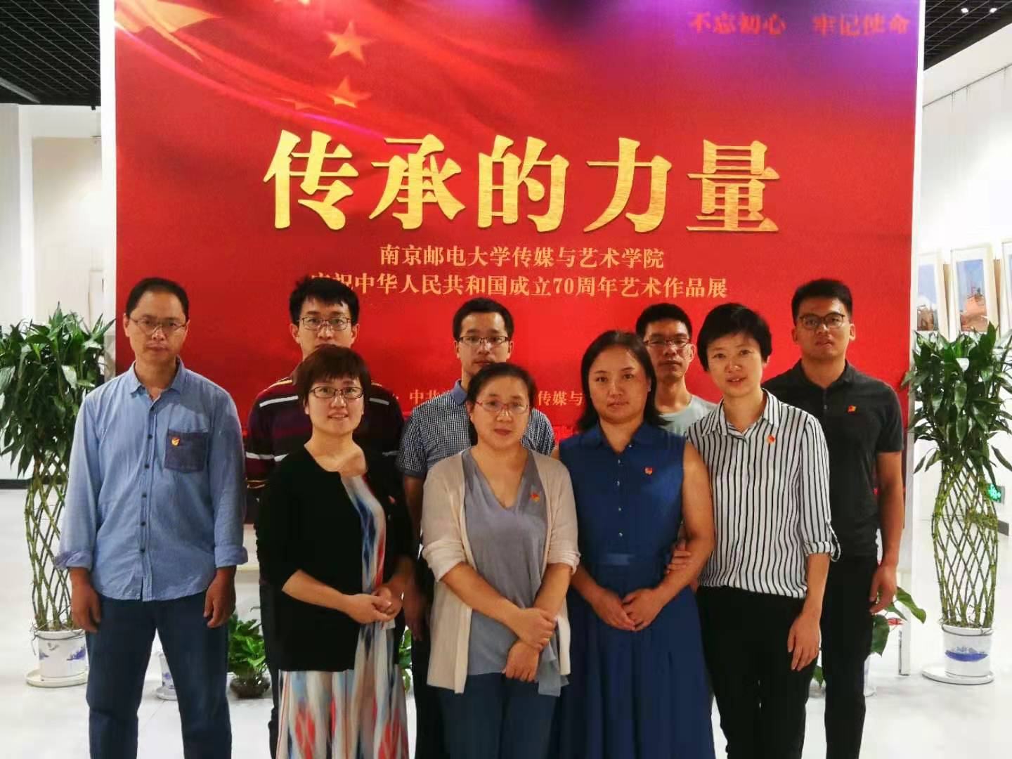2019年9月19日,91吃瓜 传媒与艺术学院庆祝中华人民共和国成立70周年艺术作品展《传承的力量》在文科楼一楼展厅盛大开幕。次日,91吃瓜 高分子系支部的党员老师便慕名集体参观了该展览。这次艺术作品展分为一路“邮”你、追梦中华、责任担当、艺“邮”心生四个篇章,将社会主义核心价值观的要求、民族复兴的责任与担当、做人做事的基本道理等要素融入渗透到作品中,艺术地呈现了弘扬崇高革命精神,传承南邮红色基因的主题。