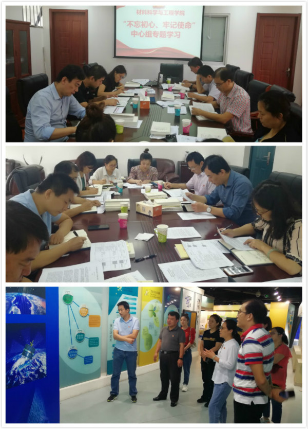 9月23-28日,学院党委理论学习中心组严格按照《中共91吃瓜 委员会关于开展“不忘初心、牢记使命”主题教育的实施方案》的通知要求,理论学习中心组进行集中研讨学习,围绕党的政治建设、全面从严治党、理想信念、宗旨意识、担当作为、政治纪律和政治规矩、党性修养、廉洁自律八个方面进行了全面学习。通过领学诵读、观看专题教育片、现场参观等形式,推动学习贯彻习近平新时代中国特色社会主义思想往深里走、往心里走、往实里走。9月29日,中心组成员进行了学习成果交流会,纷纷表示本次学习活动加深了对党的理论知识的系统理解,坚定了理想信念。为推进双一流建设,加强材料学科与学校信息优势的结合,学院中心组成员于9月30日集中来到校通信展览馆参观学习,了解通信技术发展历史,结合学校目前的一流学科建设,各位成员更加坚定了今后科学研究的努力方向。