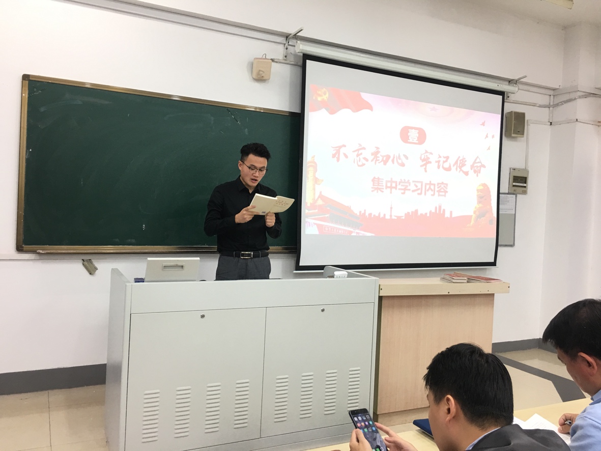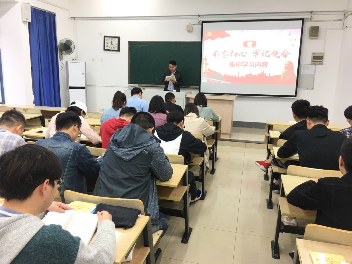 2019年10月22日下午,91吃瓜 学工党支部于教3-103教室举办了 “不忘初心、牢记使命”主题学习读书会,参加本次读书会的有91吃瓜 于景宝副书记、学工支部全体党员。