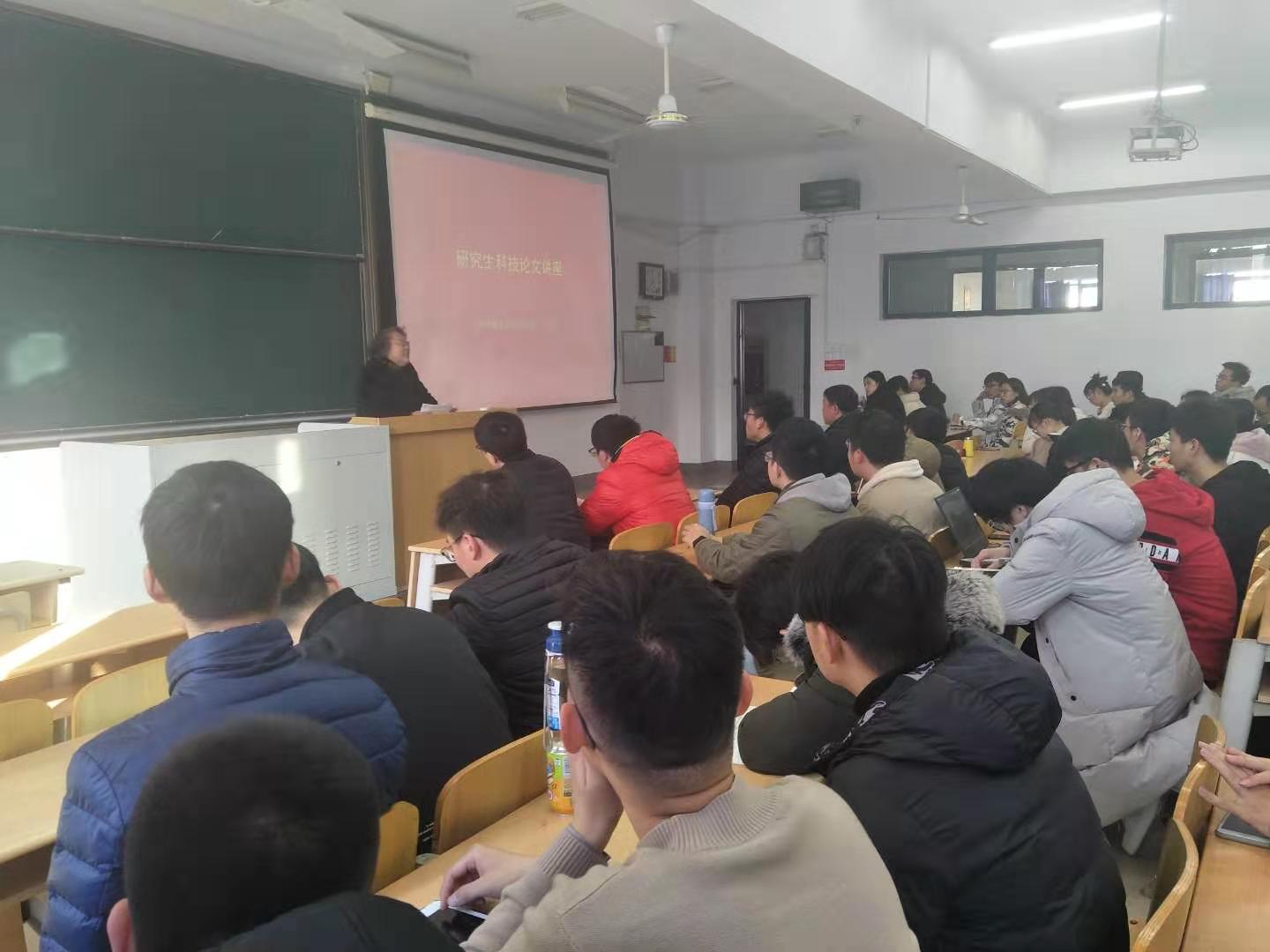 2019年12月6日上午9点30分,91吃瓜 关工委副主任谌进老师结合学院科研特色,作了题为“科学论文写作技巧”的讲座。学院党委副书记兼副院长于景宝,2019级研究生辅导员赵赫男,2019级全体研究生参加了本次讲座。