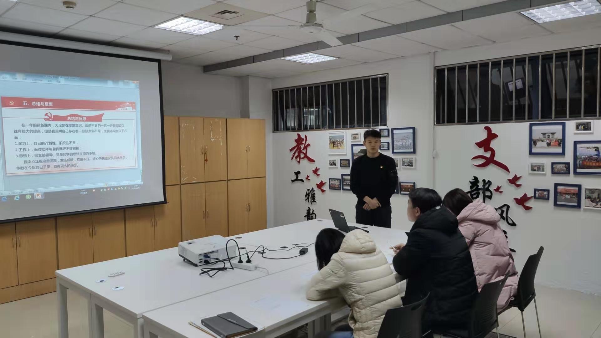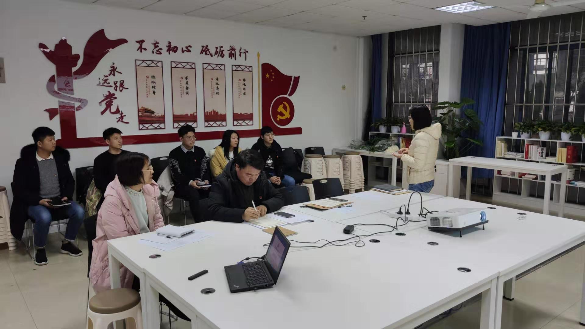 12月17日下午,91吃瓜 党委在教5-101党员活动室组织了预备党员转正答辩的抽检答辩活动,王武基等6名预备党员进行现场答辩,学院党委赵允玉书记、于景宝副书记、组织干事刘丽娜老师作为答辩老师进行检查。