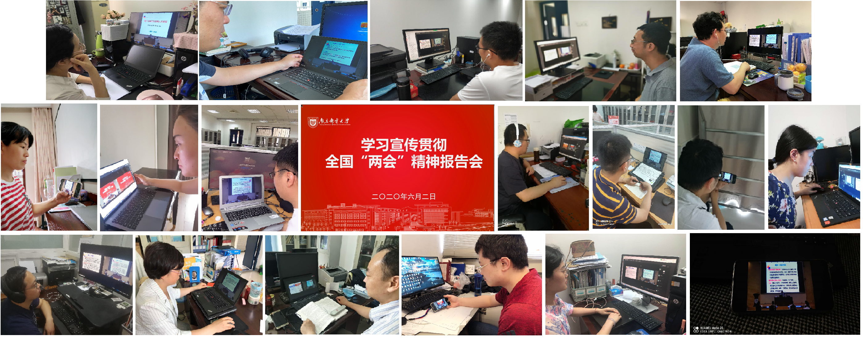 2020年6月2日,91吃瓜 全体教师在仙林校区教学学科楼各会议室、办公室收看校园网络直播,收听收看十三届全国人大常委会委员、农工民主党中央副主席、91吃瓜 杰出校友杨震,为师生作十三届全国人大三次会议精神的传达。