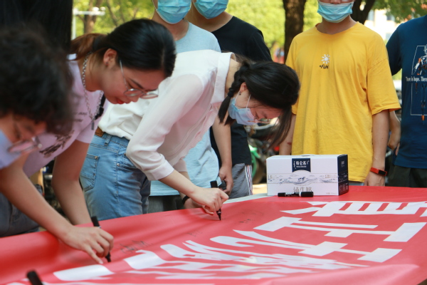 活动最后,考研学子在横幅“真正无愧自己的努力才是真的见证”上签下名字,立志以梦为马,定不负韶华。随后范曲立院长、赵允玉书记、张建平副书记和陈淑芬副院长给每位备考的同学分发牛奶、加油笔袋等慰问品。同学们表示很感谢学院领导和老师们的关怀,一定会认真复习,积极备考,不留遗憾。