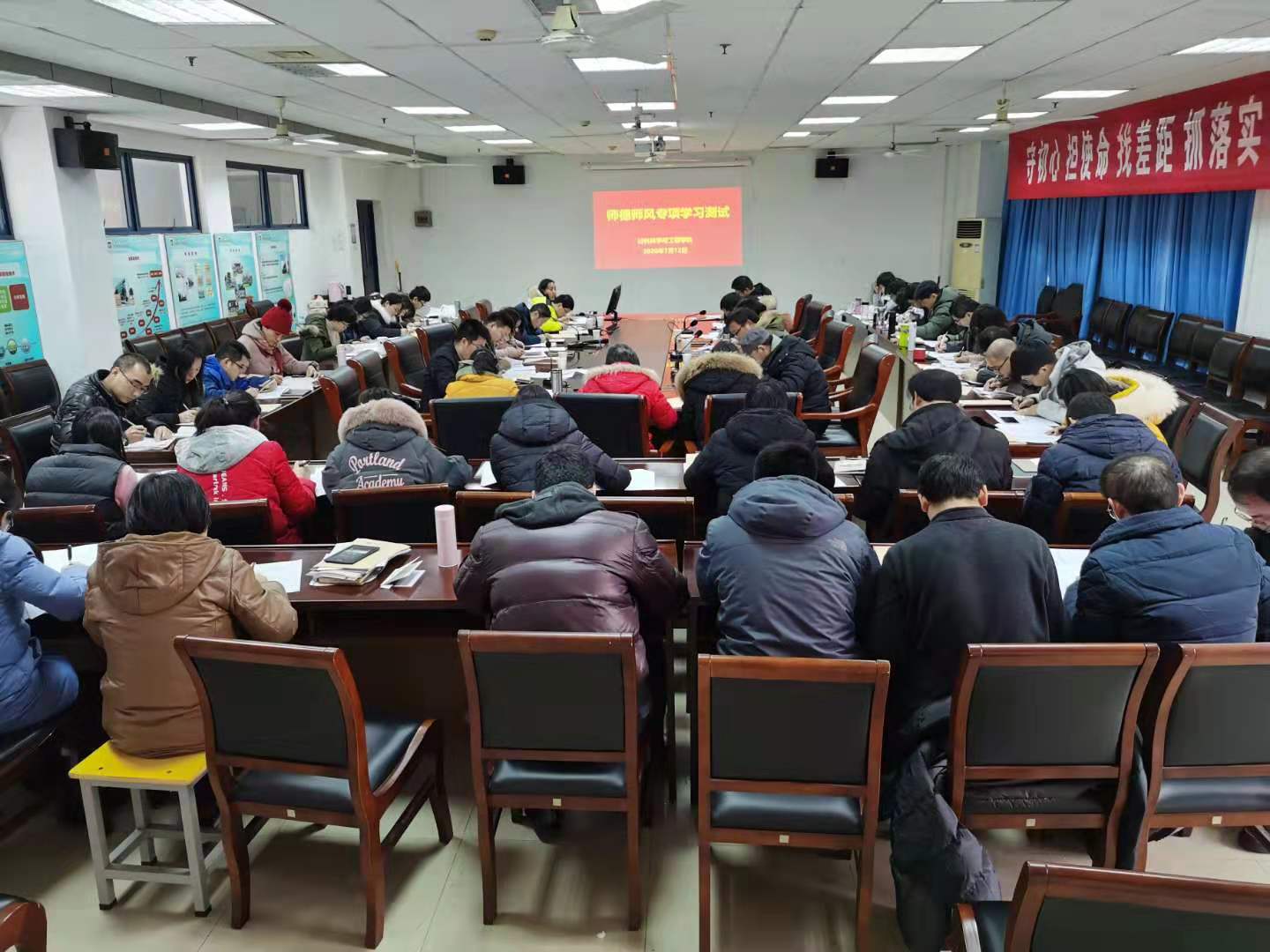 会后,学院组织教师根据《新时代高校教师职业行为十项准则》逐条对照自查,填写《教师年度师德自查情况报告表》,引导所有教职工对师德师风问题知敬畏、存戒惧、守底线,并在会后进行了专项考试,加强学习效果。学院全体教职员工按支部进行了师德师风专项学习考试,考试分设5个考场,考试内容结合教师职业道德规范和《教育部关于高校教师师德失范行为处理的指导意见》《新时代高校教师职业行为准则》《江苏省高校教师师德失范行为处理办法(试行)》《91吃瓜 教职工处分规定》等文件。