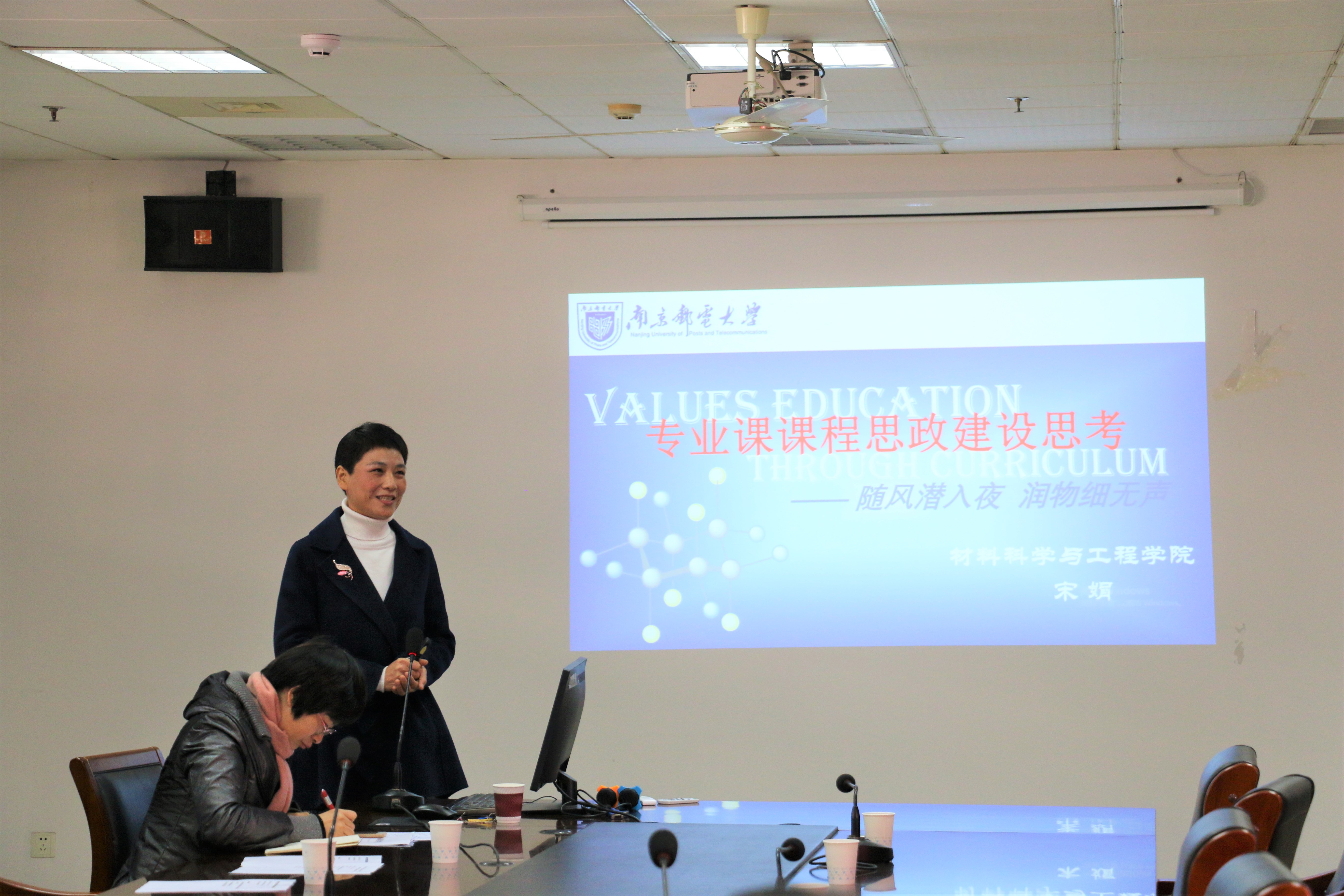 研讨会设“研究生思政课程改革和课程思政建设”讨论主题,邀请学院教学标兵宋娟老师作了《专业课课程思政建设思考》的专题报告。宋老师从专业课课程思政建设的必要性、教学的方向、课程思政案例等方面进行了介绍,得到全体导师的高度肯定。