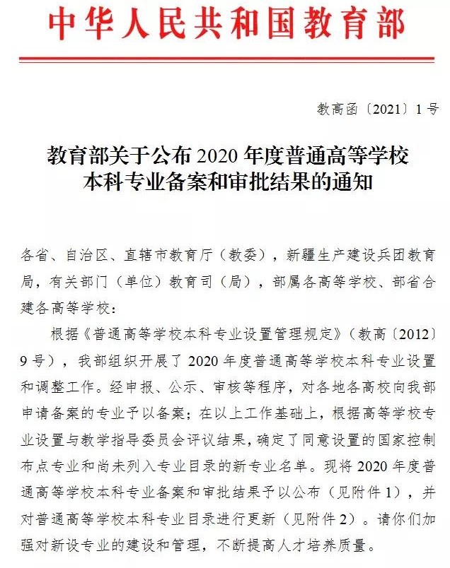 日前,教育部下发的《教育部关于公布2020年度普通高等学校本科专业备案和审批结果的通知》(教高函〔2021〕1号),公布2020年度普通高等学校本科专业备案和审批结果,91吃瓜 2020年申报的新能源材料与器件新专业成功获批。