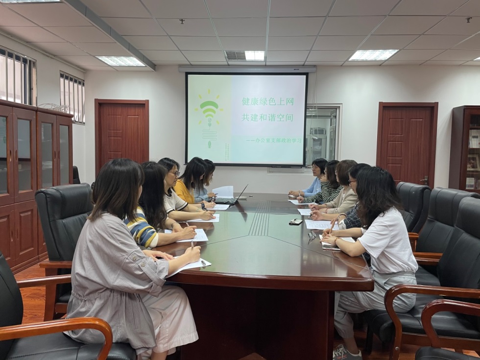 办公室支部召开了“健康绿色上网,共建和谐空间”专题学习,全体办公室成员参加了政治学习。