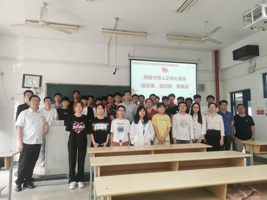 首先是相关政策解读及相关情况介绍。材料化学党支部黄镇东书记向同学们介绍了什么时候可以参加相关竞赛、如何参加及参加相关训练和竞赛对个人成长的意义,鼓励同学们弘扬科学家精神,勇于投身科研创新事业。材料化学党支部的各位老师向同学们介绍了各自的科研情况和创新创业、互联网+等的指导情况,希望感兴趣的同学积极与老师联系,为同学们了解、参加相关训练、竞赛提供了可行的指导。沈清明和陈润锋两位学院领导同志分别就本科教学和科研与创新创业的关系及如何平衡学业、科研和创新创业等为同学们进行了详细的讲解和指导。