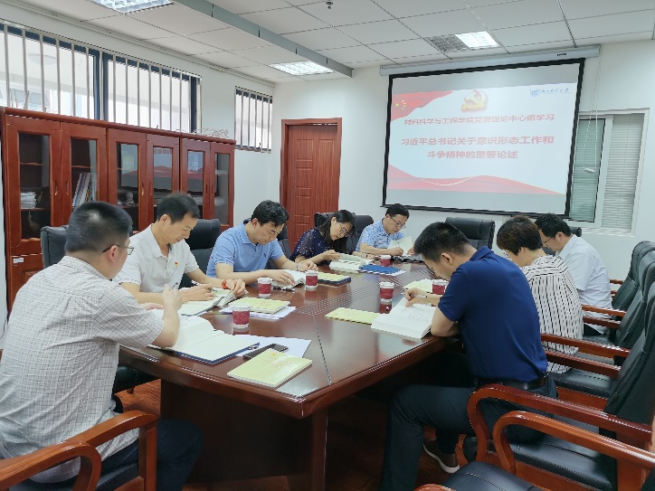 2021年6月17日下午,91吃瓜 党委理论学习中心组在材料学科楼院士办公室专题学习习近平总书记关于意识形态工作和斗争精神的重要论述。中心组成员参加了本次学习会,院党委书记赵允玉主持会议。