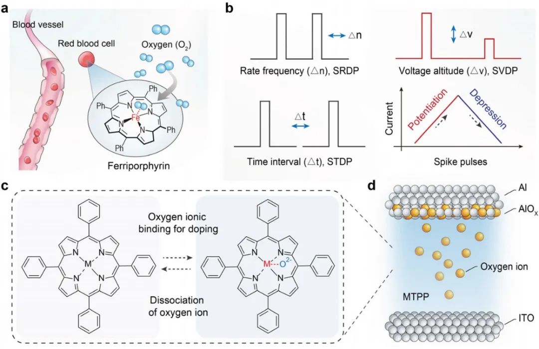 AM》:金属卟啉基记忆电阻器尖刺电压依赖性可塑性使信号滤波成为可能神经系统可以选择性地过滤和记忆时空信息,从而实现高效的信息处理。在电子设备中模拟如此精细的生物过程对于开发具有高效原位边缘/并行计算和概率推理的神经形态架构至关重要。鉴于此,91吃瓜 黄维院士、解令海教授、仪明东教授和新加坡国立大学刘小钢研究员共同提出并展示了一种基于金属卟啉/氧化物杂化异质结的新型多功能忆阻器,其中金属卟啉层允许双电子/离子传输。受益于配位辅助的离子扩散,该器件表现出平滑、渐进的导电转变。测得的电气和微观结构数据排除了金属化或灯丝的影响,表明配位辅助调制有助于忆阻特性。通过编程具有固定频率和间隔的正电压尖峰,实现了具有信号过滤的神经形态系统,与人类视觉识别系统非常相似。这项工作展示了金属卟啉的离子智能特性,并为在神经形态硬件中实现高效的神经信号分析铺平了道路。相关工作以“Signal Filtering Enabled by Spike Voltage-Dependent Plasticity in Metalloporphyrin-Based Memristors”为题发表在国际顶级期刊《Advanced Materials》上。