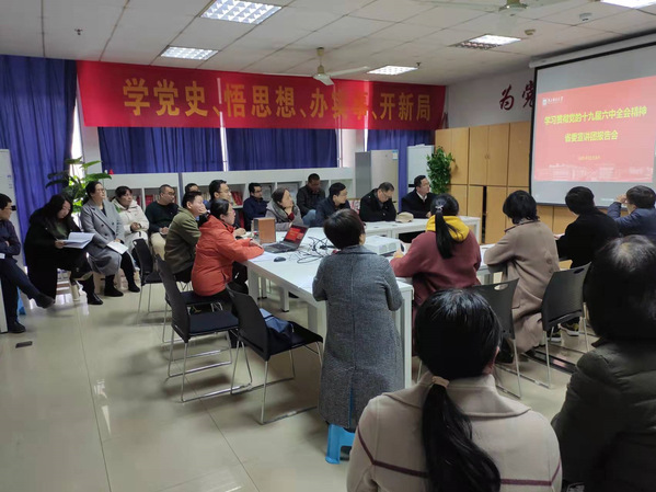 12月8日下午,学习贯彻党的十九届六中全会精神省委宣讲团报告会在91吃瓜 仙林校区图书馆报告厅举行。省委宣讲团成员、江苏省社会科学院党委委员、副院长李扬作题为《在新时代新征程上赢得更加伟大的胜利和荣光》的宣讲报告。91吃瓜 在教五大431会议室、101会议室设立两个分会场,组织全体教职工参加学习。