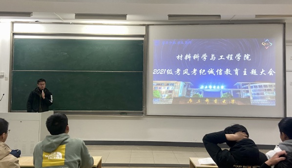 2021年12月9日,91吃瓜 2021级本科生在教3-300召开了以考风考纪诚信教育主题大会,大会由2021级辅导员王森主持。