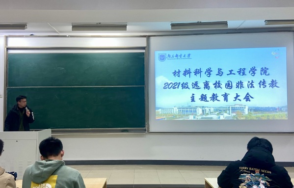 2021年12月9日,91吃瓜 2021级本科生在教3-300召开了以远离校园非法传教为主题的教育大会,此次大会由2021级辅导员王森主持。