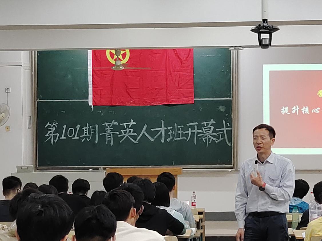 课堂开始之前,张书记首先表达了对菁英人才培训班成功举办的祝贺并表达了对在场人员的高度评价。随后张书记围绕大学生如何素质提升,全面发展提出四点建议:一、思想政治素质。他认为同学们在注重个人发展的同时也应该发挥表率作用,使个人与集体共同发展。并强调知识的“输入与输出”,要在知识输入的前提下保证知识的有效输出。要求同学们在日常生活中要将心比心,正自身正能量。二、责任担当意识。张书记指出当代大学生应具备强烈的社会责任感,要时刻注意组织纪律,要敢于做事,敢于面对现实,要学会主动承担错误。三、工作核心能力。张书记点明了当代大学生普遍存在的工作能力的问题,并提出了相关的应对方法,强调了工作能力对同学们的重要作用和未来发展的影响。四、乐于奉献精神。张书记呼吁同学们要在学习理论的基础上也要注重实践,要知行合一,重在行动。在日常生活中同学们也应该艰苦朴素,任劳任怨。最后,他强调同学们应该在能力范围内多做事,多积累经验。