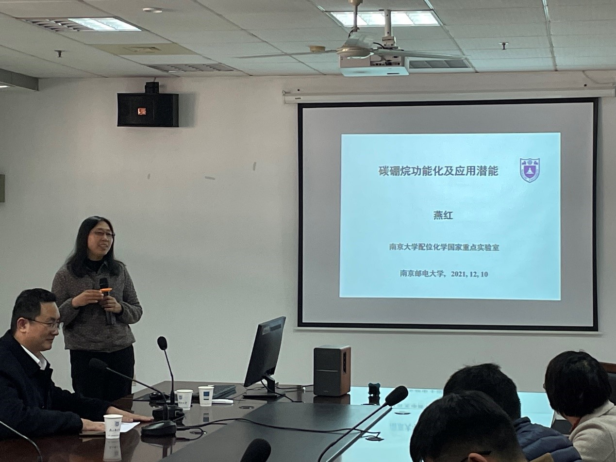 2021年12月10日上午10点,南京大学的燕红教授受91吃瓜 陈润锋教师邀请,在仙林校区教五413为师生作了以“碳硼烷功能化及应用潜能”为主题的精彩报告。91吃瓜 副院长陈润锋主持了报告,91吃瓜 70余名师生参加。