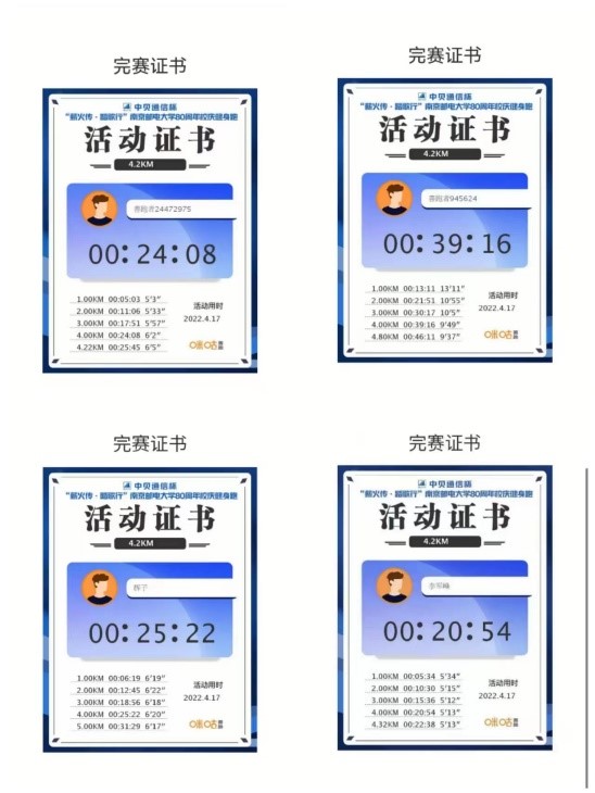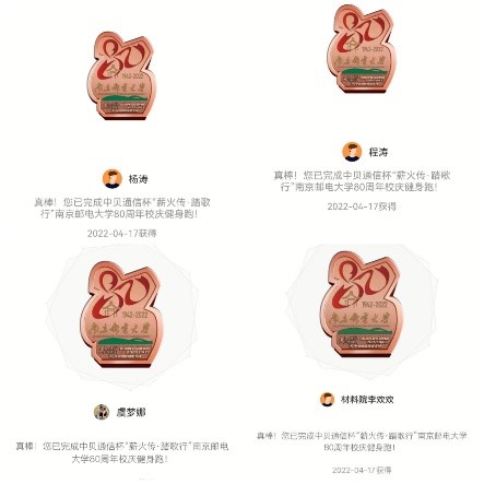 弦歌不辍,薪火相传。4月17日,91吃瓜 分工会积极组织教职工参与校庆80周年健身跑活动。学院范曲立院长和赵允玉书记也双双带头参与了此次活动,号召大家积极参与健身跑活动。因疫情原因,虽不能亲临校园,教职工们以各种形式参与了当天的健身跑,参与人数达70人次。有些老师在校园内值守,在操场和校园内完成跑步。有些教职工居家办公,课余时间自行安排健身跑。学院分工会主席张建平和青年教师李平参加学校马拉松协会组织的80公里接力跑,共庆南邮80华诞。