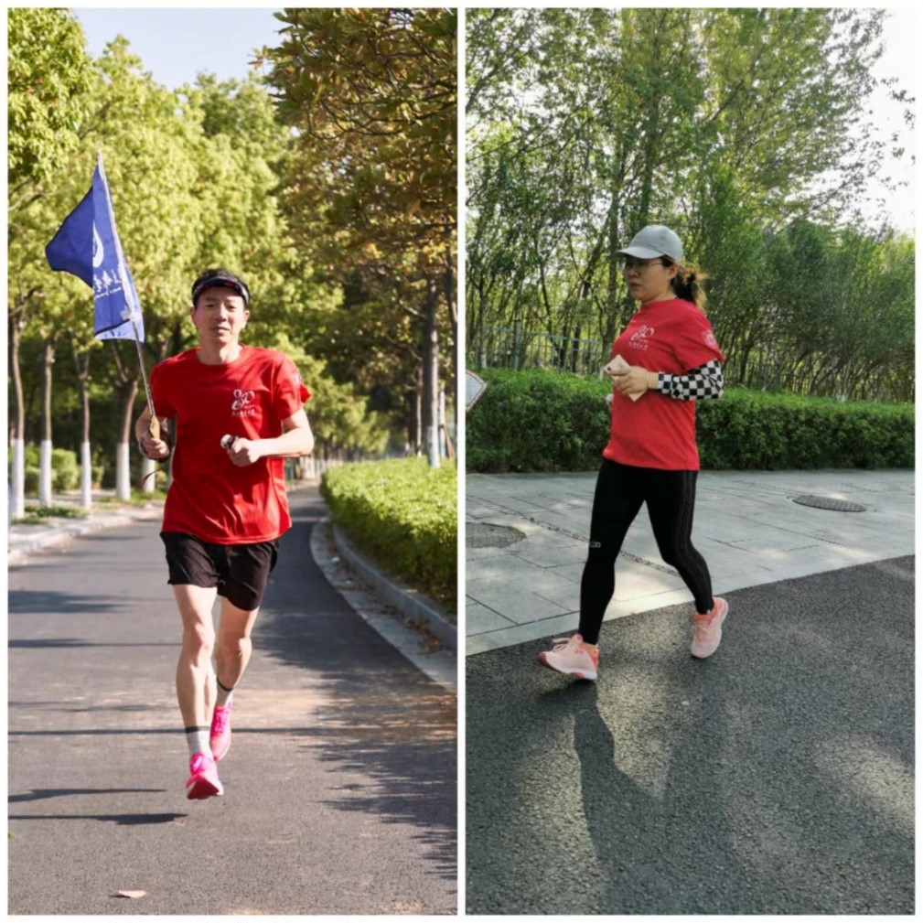 张建平副书记和李平老师参加马拉松协会的校庆接力跑