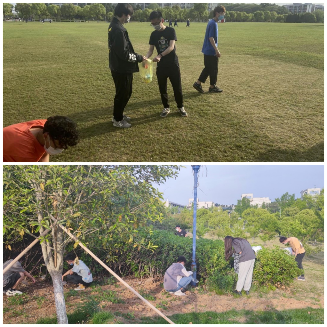 4月23日上午,91吃瓜 党委组织学院第13期入党积极分子培训班学员投身校园义务劳动,集中清理校园内的垃圾、杂物。培训班学员分小组来到学生活动比较多区域,如鼎山、操场、教室、教学楼周边等地进行义务劳动。他们自带手套、扫帚、垃圾袋,不怕苦不怕脏,清理收集各种丢弃物废弃物。虽然天气闷热,但大家热情高涨,活力满满,表示在美化校园环境的同时学习了垃圾分类和资源回收知识,更体会到清洁工、保洁员工作的辛苦和不易。“手脏心不脏”,大家为自己能参加美化校园活动感到自豪,也更加热爱劳动、尊重普通劳动者。