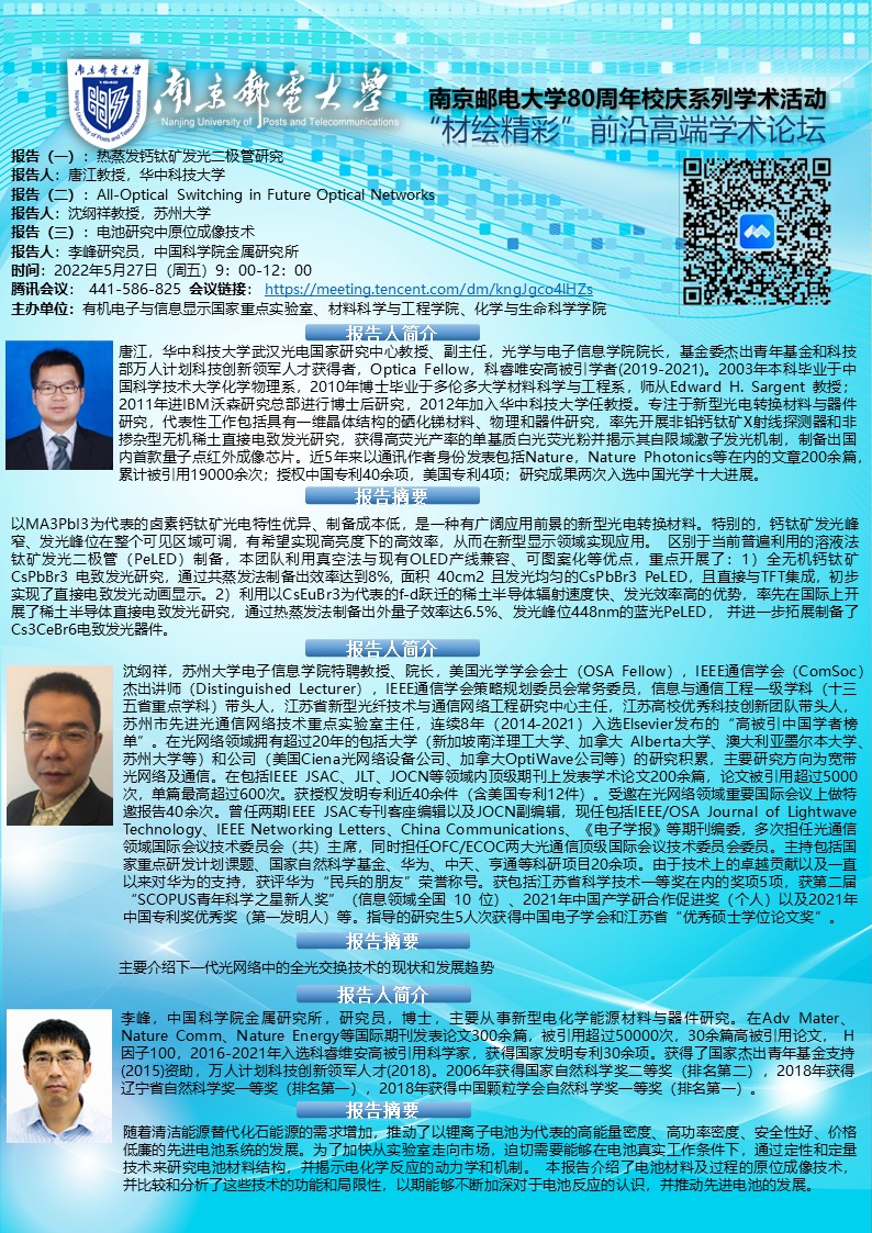 华中科技大学唐江教授&苏州大学沈纲祥教授&中国科学院金属研究所李峰教授学术报告