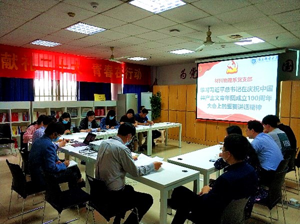 材料物理系党支部于526日在教5-101召开学习会,专题学习习近平总书记考察中国人民大学的重要讲话精神、习近平总书记在庆祝中国共产主义青年团成立100周年大会上的重要讲话精神和习近平总书记给南京大学留学归国青年学者的回信精神。会议由支部书记宋春元主持。