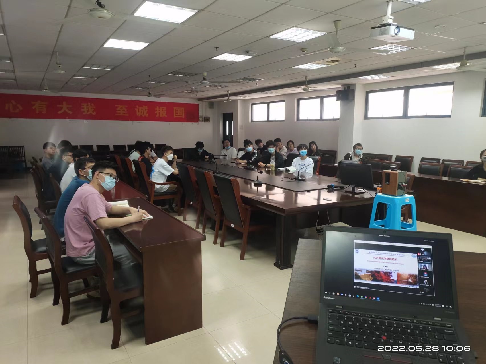 本次讲坛的主题为:《先进电化学储能技术》,王教授先从储能技术的重要性、储能技术的多种形式、液态金属电池的概念和原理等方面深入浅出地给老师和同学进行了认真的讲解;随后还详细分享了其课题组十年来在液态金属电池领域获得的创新成果和宝贵经验;最后,王教授还展望了未来国家对于新能源材料与器件专业人才需求和“双碳”市场对储能技术的需求和行业发展前景。