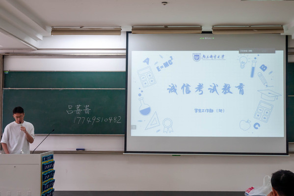 2022年6月5日,91吃瓜 2019级本科生在教2-101召开了诚信考试教育主题大会,大会由2021级辅导员王森主持。