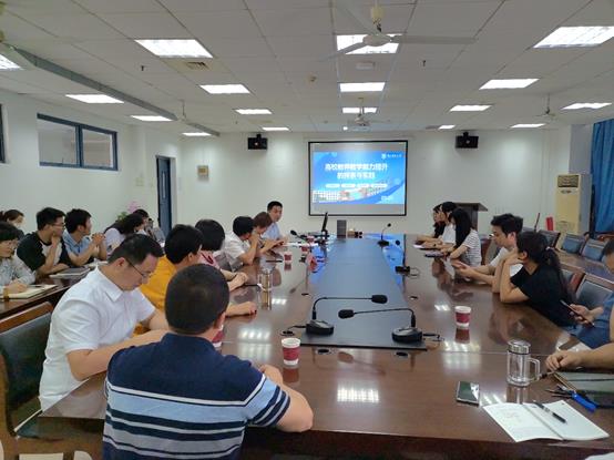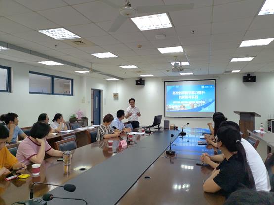 2022年9月7日下午,学院特别邀请到教务处副处长兼教师教学发展中心副主任李永涛教授莅临91吃瓜 指导,并作题为《高校教师教学能力提升的探索与实践》的报告。报告由91吃瓜 副院长沈清明教授主持,91吃瓜 党委书记赵允玉、党委副书记兼副院长吕蔷蔷、副院长陈润锋、副院长陈淑芬,各专业系主任实验教学中心主任、近三年入职的青年教师以及在研教改、课程建设、教材建设的负责人在大会议室进行教研学习,其他教师在线参加本次教研活动(腾讯会议444 873 972)。