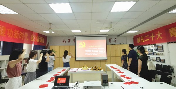 为庆祝新中国成立73周年,进一步增强党员身份意识,增强党员的归属感、荣誉感,引领党员同志更加自觉地感党恩、听党话、跟党走,9月26日下午,办公室党支部开展“我与祖国共奋进——‘迎国庆·心向党’共度政治生日”主题党日活动,为支部第三季度入党的同志们过了一个既严肃又温馨的政治生日。此次活动邀请了学院党委委员沈清明副院长参加。