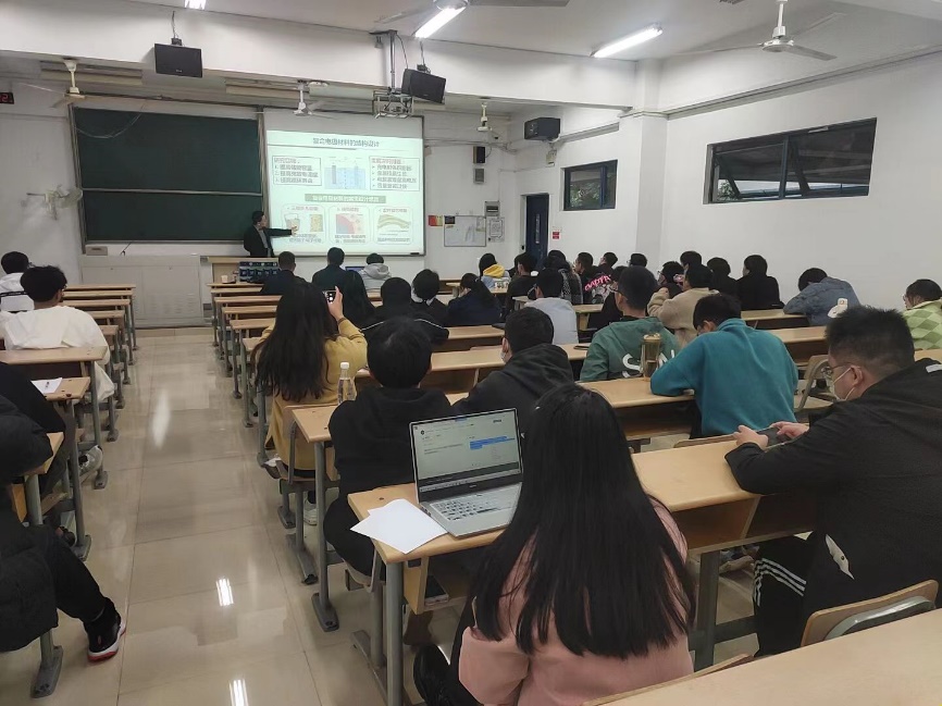 本次讲坛的主题为:新能源材料与器件研究的现状与趋势——面向未来的清洁能源科技。金教授先从人类文明发展史着手,强调了能源和材料的重要性,随后从能源转化材料和技术、能源存储材料与技术和能源催化材料与技术三个方向深入浅出地给老师和同学详细而生动的讲述了新能源材料与器件研究的现状和趋势,并分享了其课题组近年来在太阳能电池、廉价规模化储能电池和催化固氮等领域获得的创新成果和宝贵经验。最后,金钟教授还对未来新能源材料与器件领域短、中和长期的清洁能源技术研究方向和需要解决的关键科学问题进行了总结和展望。老师和同学们在认真听取了金钟教授的精彩讲座,反响强烈,并与金教授进行了深入探讨。金钟教授详细解答了学生对于目前电动汽车主要利用火力发电为什么叫新能源汽车的疑虑,并和同学们深入讨论了全固态锂离子电池面临的关键问题、锌电池的发展前景和高分子能源材料的研究现状和应用前景等诸多问题。