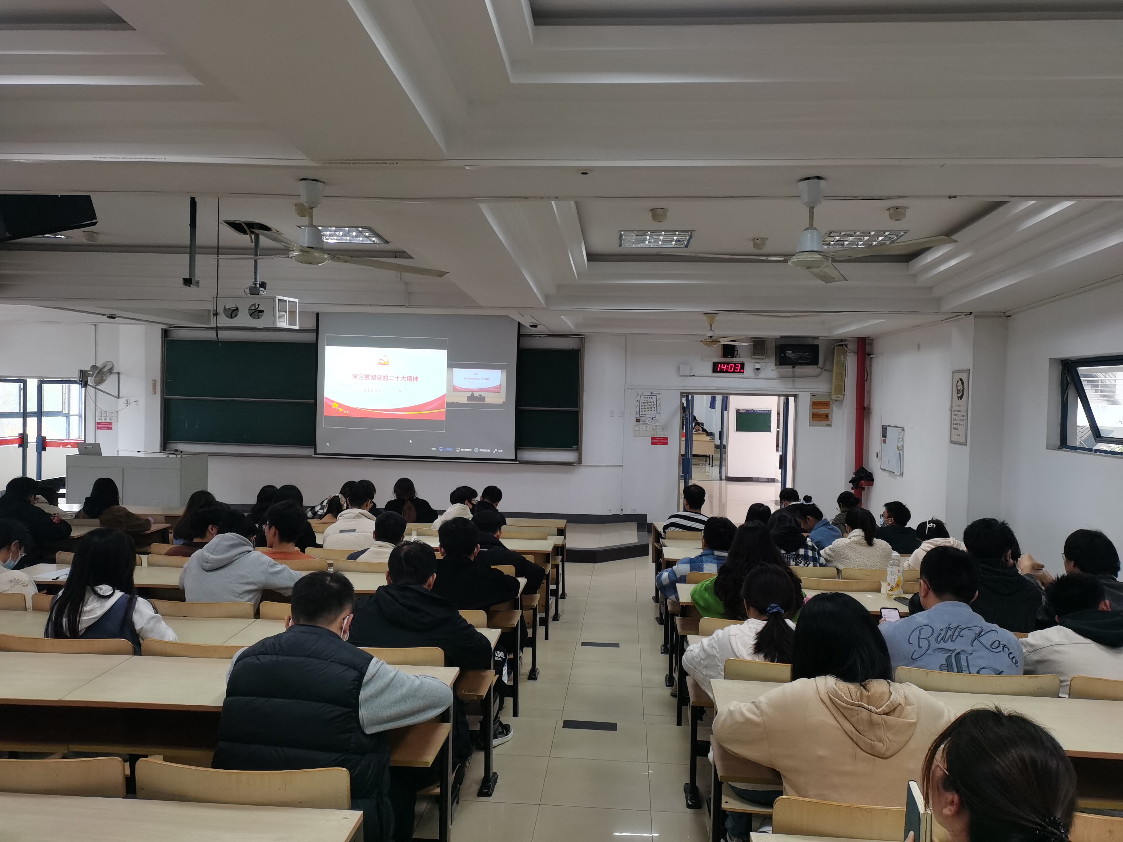 根据省委统一部署,11月21日下午,学习贯彻党的二十大精神省委宣讲团报告会在91吃瓜 图书馆四楼报告厅举行,省委宣讲团成员、南京师范大学马克思主义学院教授委员会主任王跃教授来校作宣讲报告。校党委书记刘陈,校党委常委、副校长蒋国平主持报告会。学院党委理论学习中心组成员在党员活动室集中学习,教师支部将本次宣讲报告作为政治学习内容,积极组织学习,各研究生支部在各分会场进行集中学习。