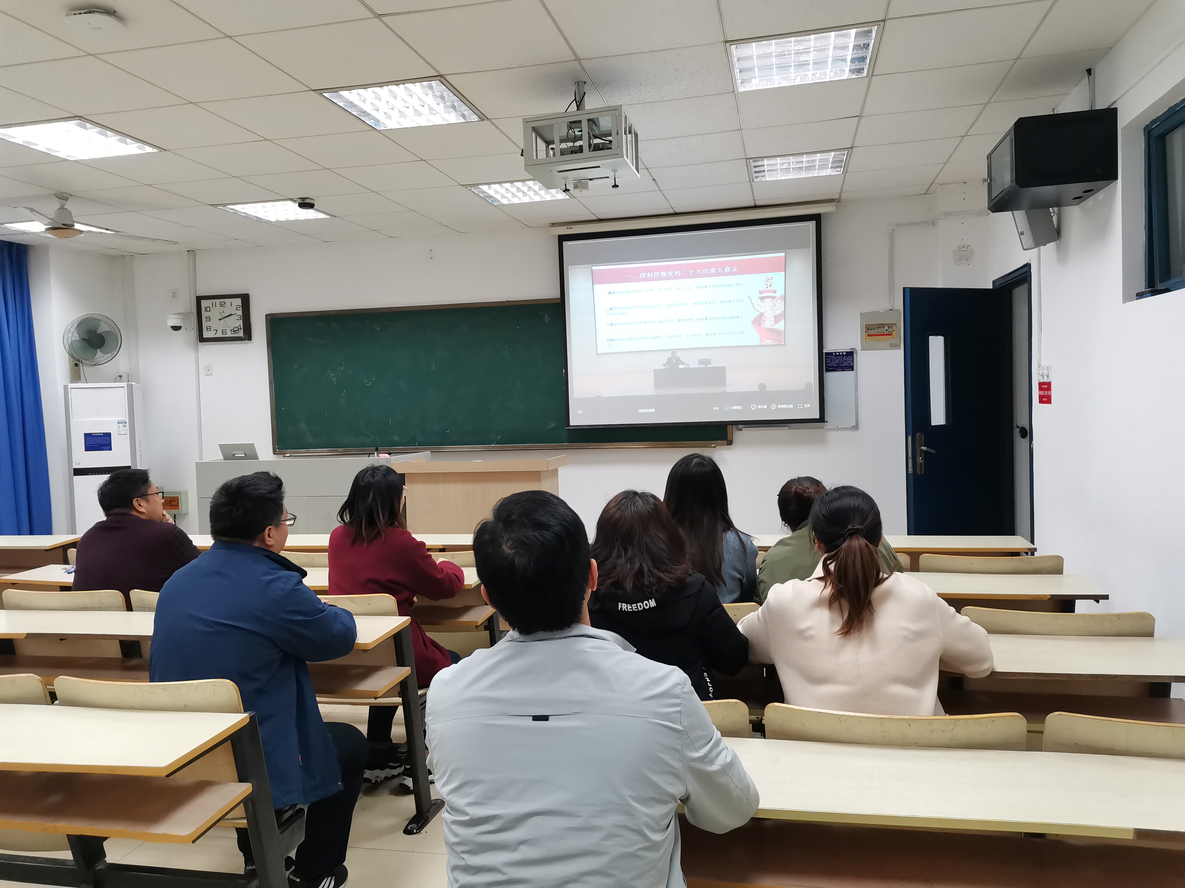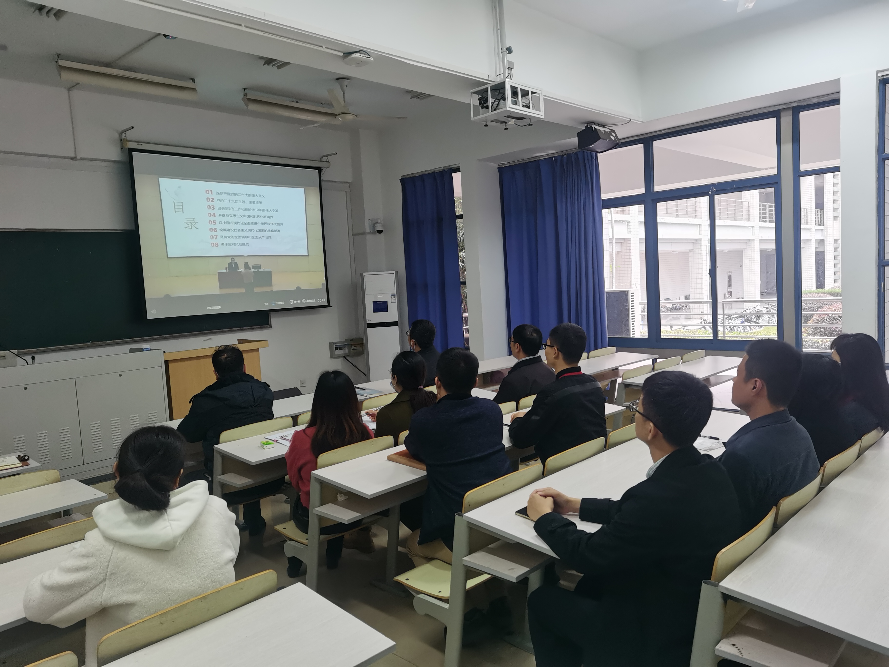 宣讲中,王跃教授围绕深刻把握党的二十大的重大意义、党的二十大的主题和主要成果、全面建设社会主义现代化国家的战略部署、坚持党的全面领导和全面从严治党、勇于应对风险挑战等八个方面,对党的二十大精神进行了系统阐述和深入解读。