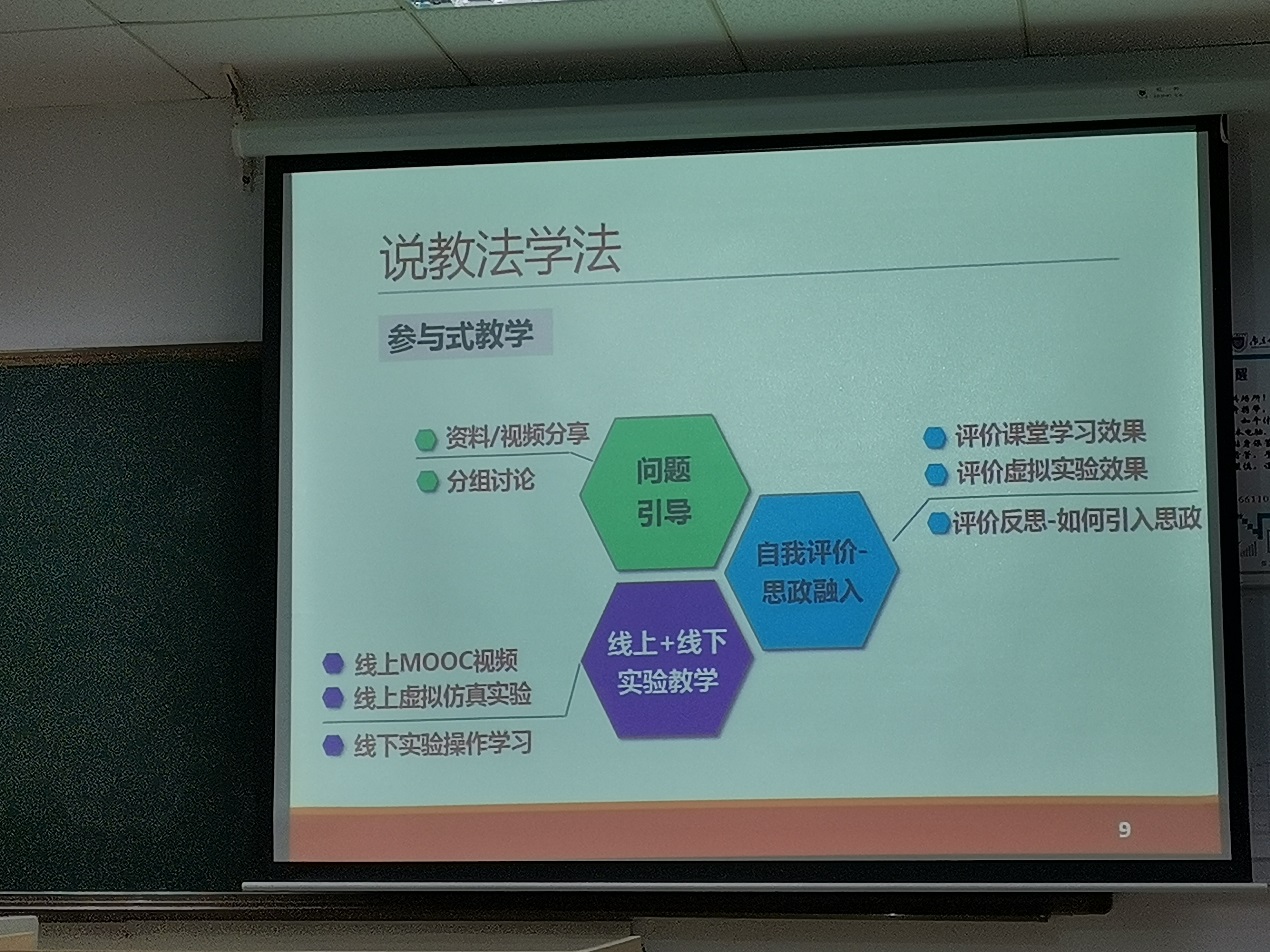 经过两院初审,本次参加课程思政竞赛共四组青年教师,参加教学创新竞赛共两组青年教师。大赛第一部分是先进行课程思政竞赛评审,四组教师分别进行5分钟说课和10分钟讲课;第二部分是进行教学创新竞赛评审,两组参赛教师分别结合教学大纲与教学实践,均进行了15分钟的教学设计创新汇报。专家评委依据选手的汇报进行提问交流,对于课程思政,评委们给出了具体的建议,如何在课程中润物尽无声地融入思政,以及如何自信的向学生展示。贝尔英才学院徐欣副院长分享了他多年来参与竞赛以及指导其他教师参赛的经验,总结了一些思路,建议根据现有课程教学过程中存在的问题,提出为何要进行教学创新?有条理地讲述教学创新之处,对此创新教学前后取得的成果,最后坚定创新教学改革的信心,提出继续努力的决心。其他评委也指出一些其他的问题,如在授课的过程中一定要注意语音语速,注重教态,积极与学生交流;在教学过程中注重板书设计,需要有逻辑性,做到重点突出;教学不能像作报告,要考虑学生的接受程度,多观察学生反应。