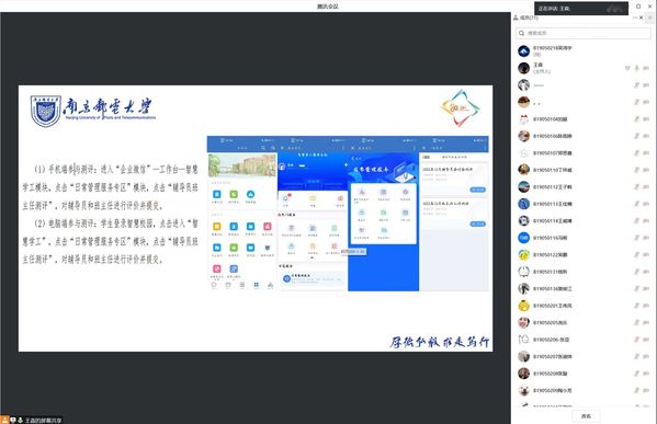 2022年12月7日,91吃瓜 2019级本科生在腾讯会议中召开2019级辅导员与学生面对面暨年级大会。会议上,2019级辅导员王森老师做本学期工作总结,从学习、卫生和纪律等角度指出了当前2019级本科生存在的问题,希望全体学生抓紧剩余的时间努力考研复习,争取取得好成绩。