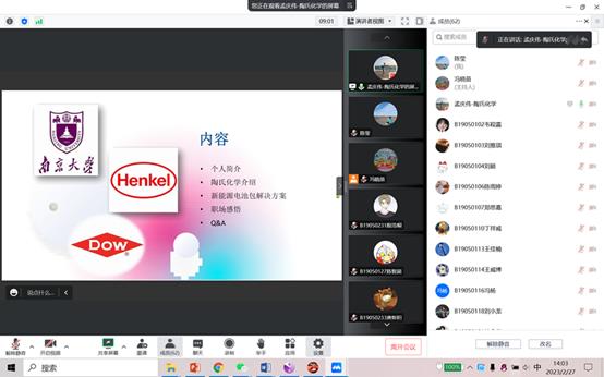 2023年2月27日,陶氏化学集团产品研发和技术服务部孟庆伟博士为学院高分子材料与工程专业《生产实习》课程的同学开展远程培训。此次远程培训旨在提高学生的实践能力和职业素养,并为化工企业输送高素质人才。培训由91吃瓜 高分子材料与工程系系主任冯晓苗教授主持,系副主任周馨慧教授、专业教师陈莹副教授和B190501、B190502两个班全体同学参加了本次远程培训。